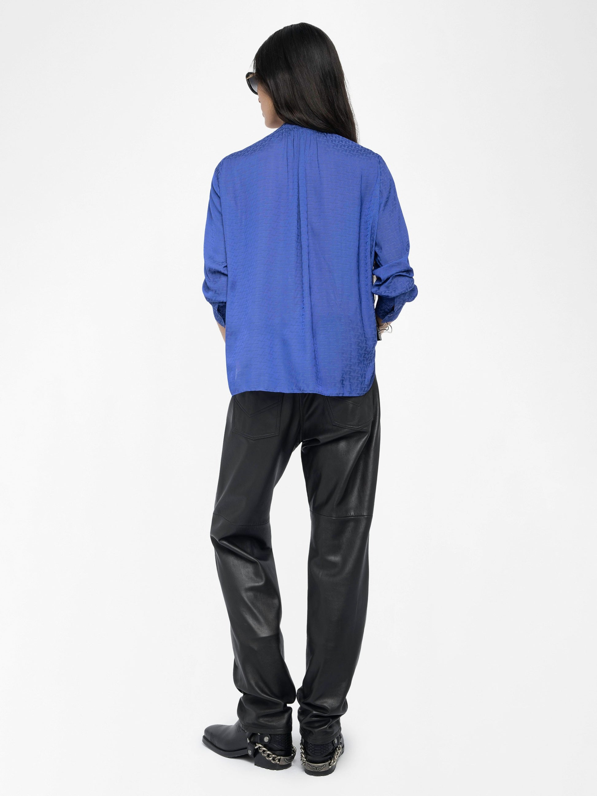 Blusa de satén jacquard ZV con cuello abierto, mangas largas y detalles fruncidos.