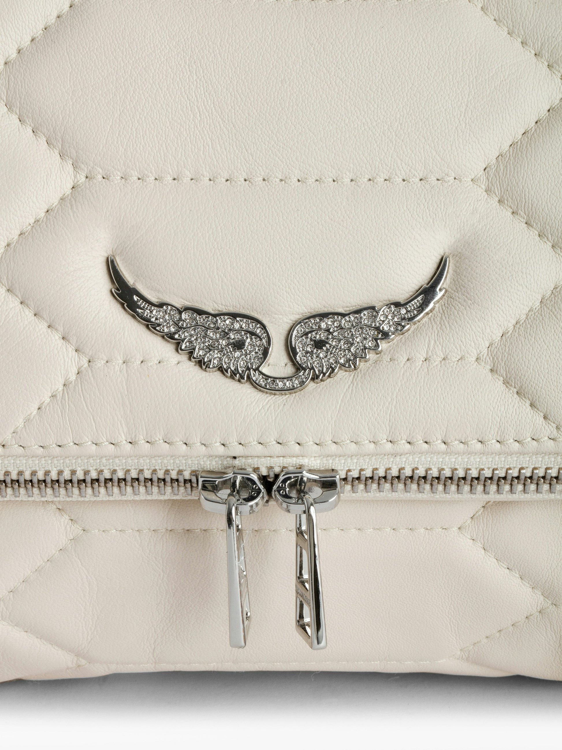 Bolso de cuero liso acolchado con patrón de escamas de serpiente y correa para el hombro.