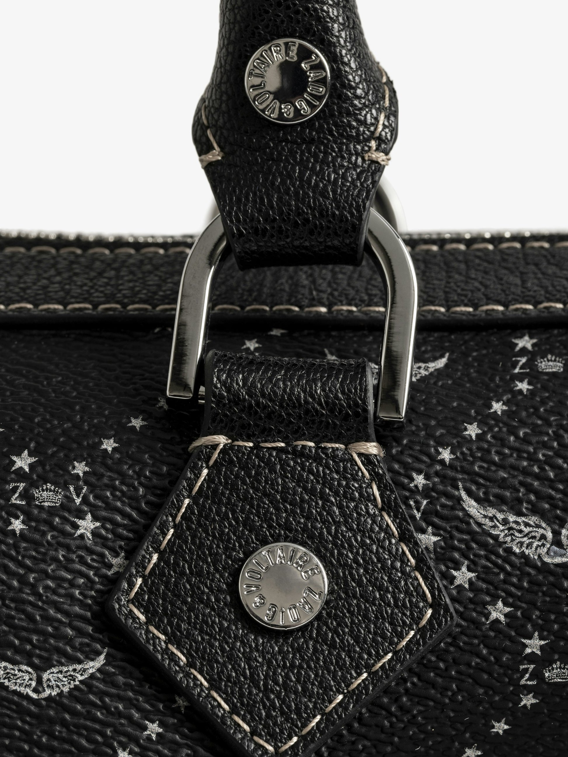 Bolso de lona revestida estampada con monograma, bandolera ajustable y asa de piel granulada.