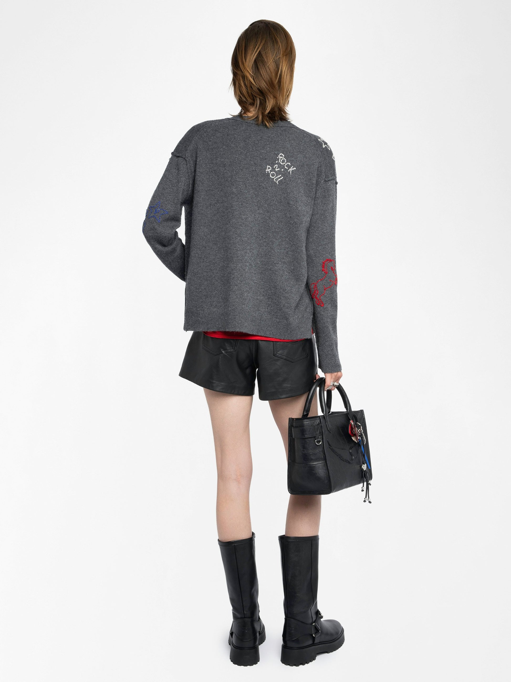 - Cardigan en 100% cachemira - Bordados - Cuello en V - Cierre abotonado - Mangas largas