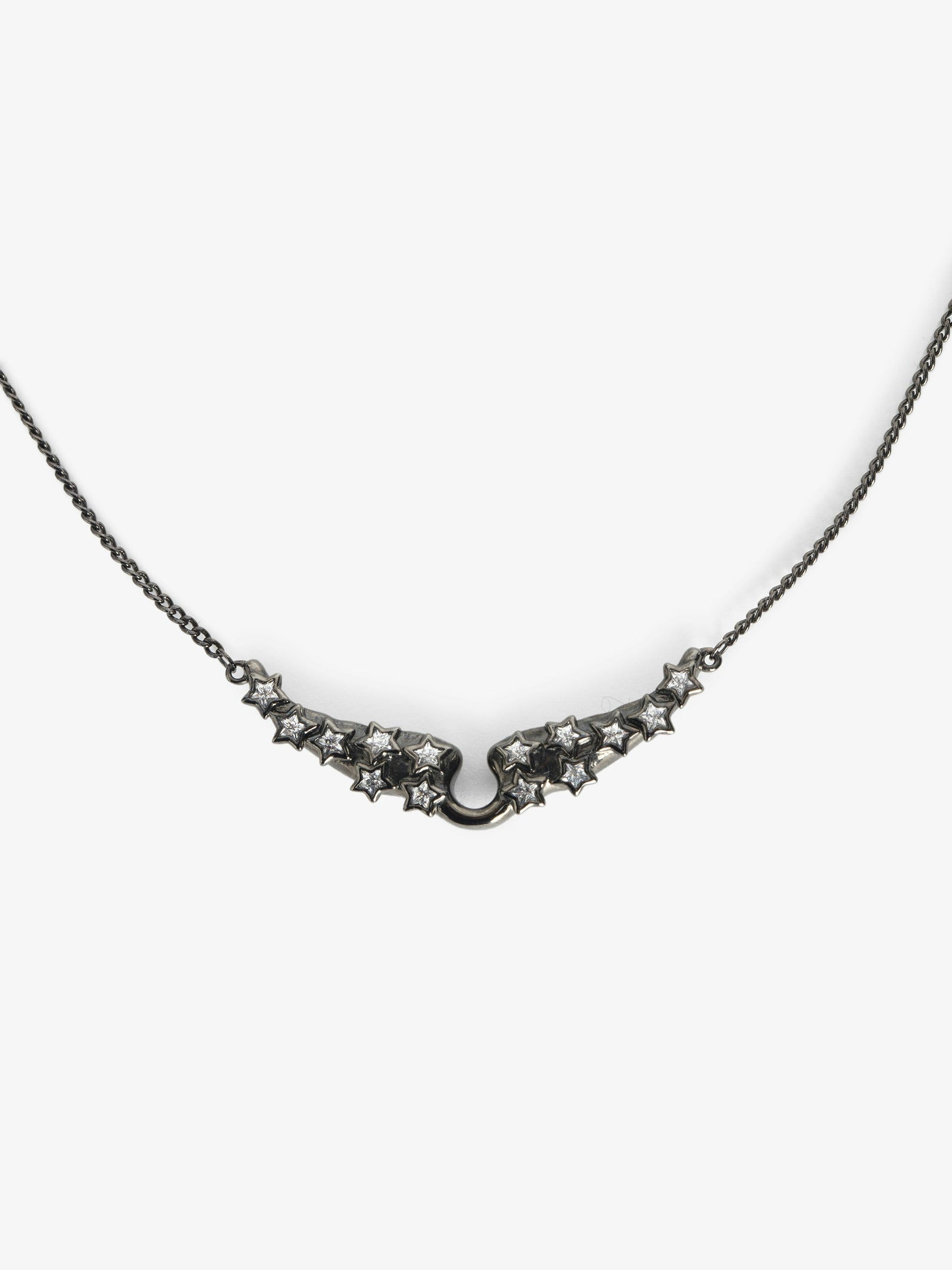 Collar de cadena de latón engastado con pedrería en forma de estrellas.