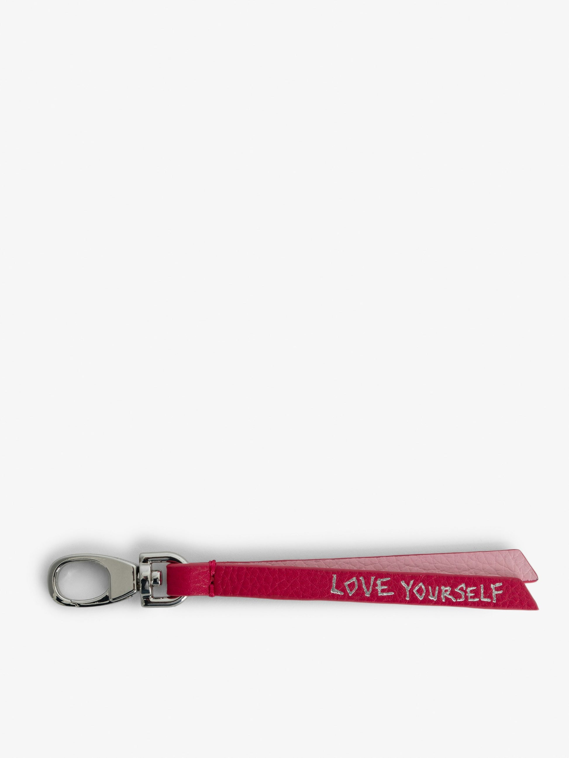 Llavero de correa de cuero granulado con mensaje "Love Yourself".