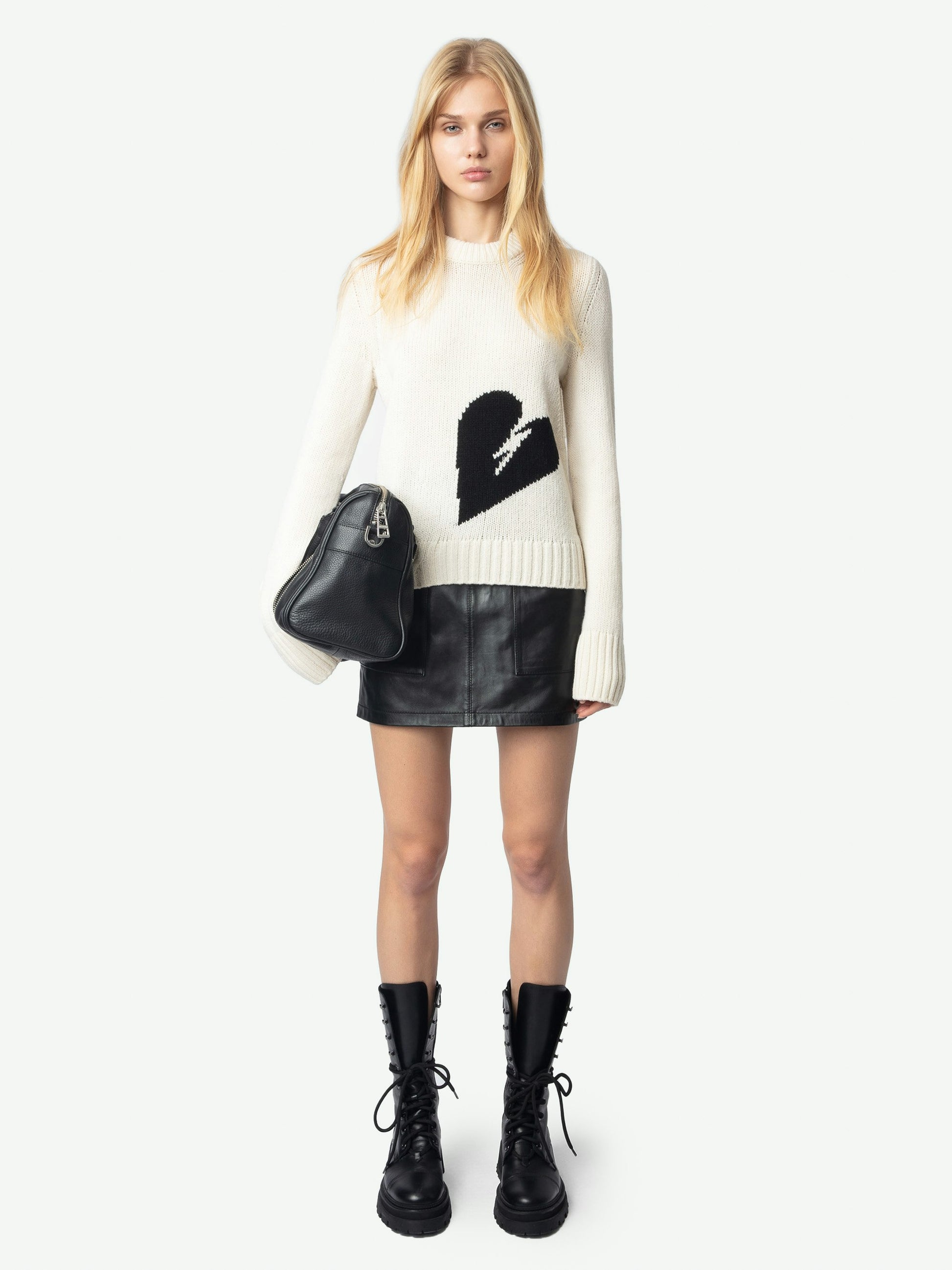 Jersey en 100% lana merino cruda con mangas largas y motivo de corazón.